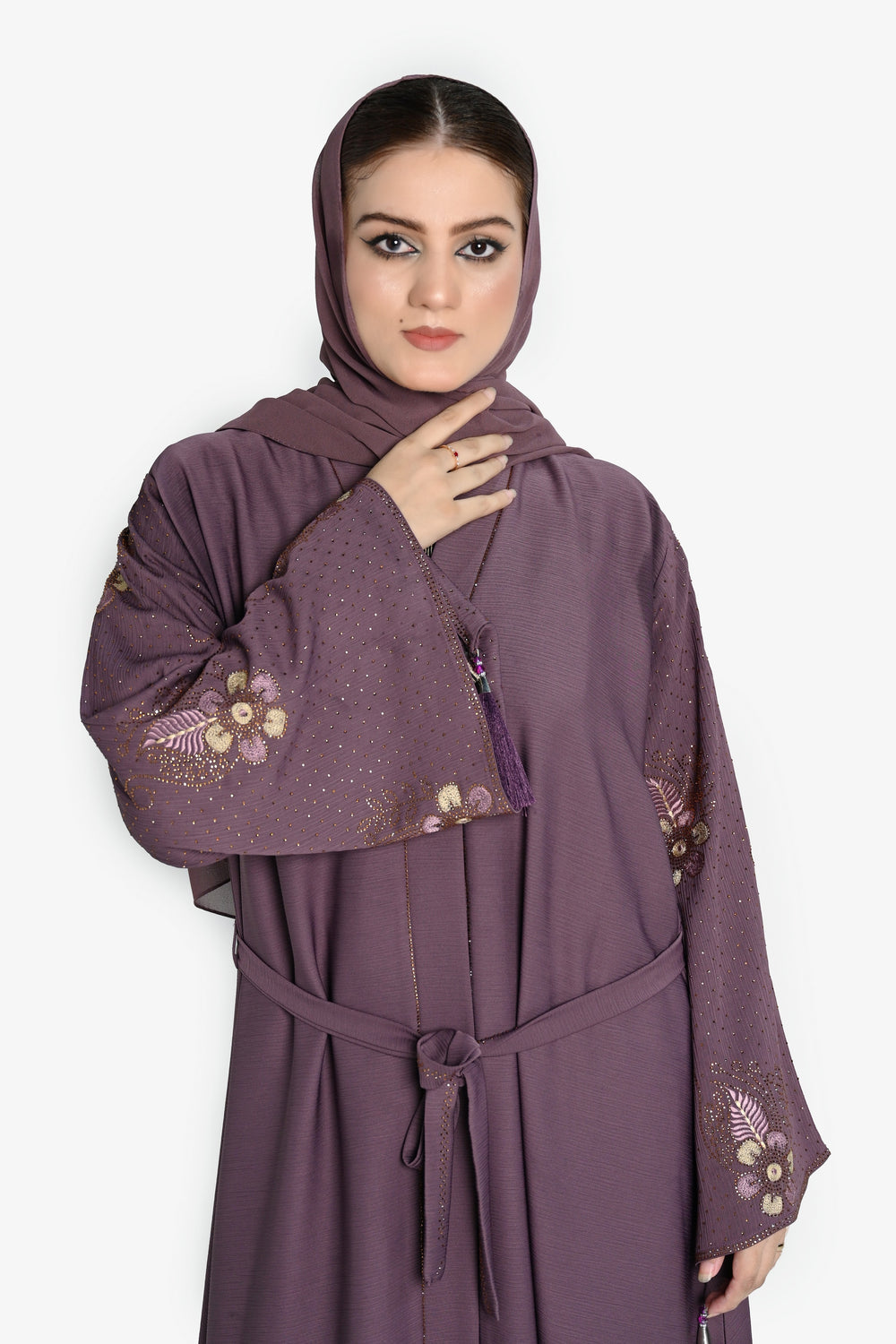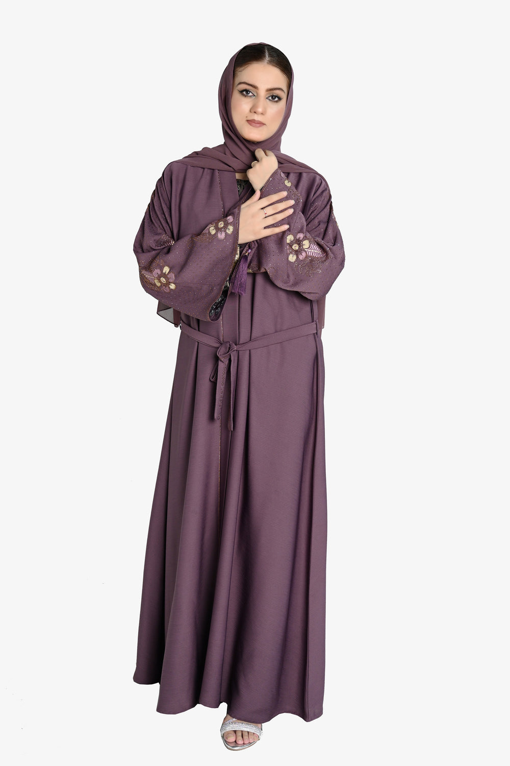 Step into sophistication with our Elegant Purple Embroidered Abaya, designed for women who value modesty and style. Made from premium quality fabric, this abaya offers a graceful flow, floral embroidery on the sleeves, and comes with a matching hijab for a complete modest look.